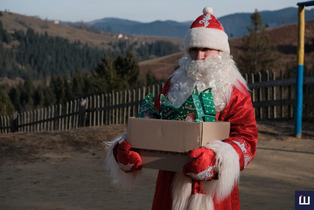 Миколай же вирішив, що ці дітки потребують дива, і завітав до них особисто. Разом зі своїми помічниками він тягнув подарунки догори, як і школярі – власні рюкзаки щоранку.