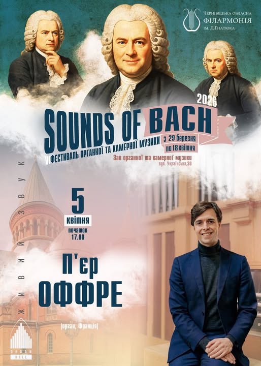 Вперше у Чернівецькому органному залі виступатиме французький органіст П’єр Оффре. Сьогодні, 5 квітня, о 17:00 він представить програму «Бах. Музика, що тримає небо», у якій об’єднає класичні твори в єдину драматичну авторську концепцію.